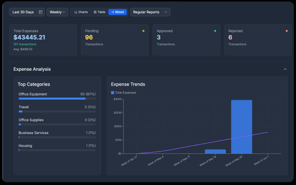 AI models are trained on millions of transactions. They learn your spending patternsand automatically assign categories like ‘Software Tools’, ‘Travel’, or ‘Home Office’, getting smarter every month you use them.